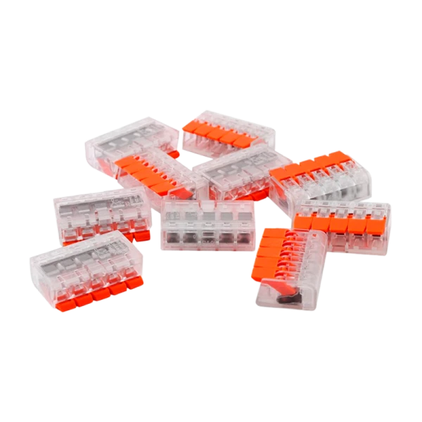 Строительно-монтажные клеммы Volsten серии 221 предназначены для соединения одножильных и многожильных проводов сечением от 0,2 до 4 мм2. Усовершенствованная конструкция плоских легкозащелкиваемых рычагов позволяет быстро и надежно соединить проводники.
