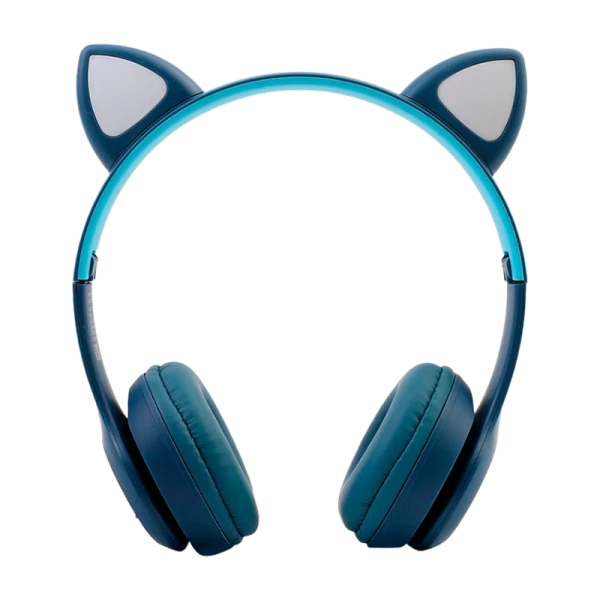 Беспроводные накладные наушники синего цвета Ergolux ELX-BTHP02-C06 с ушками оснащены Bluetooth V5.3, встроенным микрофоном, MP3-плеером и FM-радио. Светящиеся кошачьи ушки, складная конструкция, время работы до 8 часов. Идеально подходят для IOS и Android, совместимы с различными устройствами.