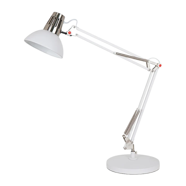 Светильники настольные для использования с лампами накаливания предназначены для освещения индивидуального рабочего пространства на письменном столе. Настольный светильник Camelion KD-431A Berlin подходит для чтения и работы. Белый и хромированный корпус, мощность 40Вт, цоколь E27, материал корпуса сталь.