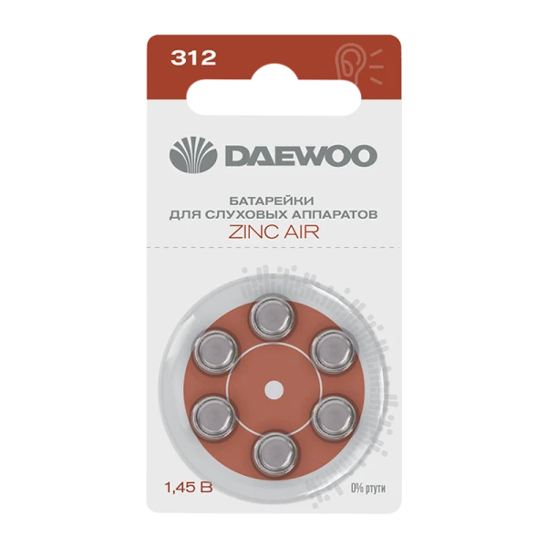 Батарейка Daewoo ZA312 BL6 Zinc Air 1.45V;