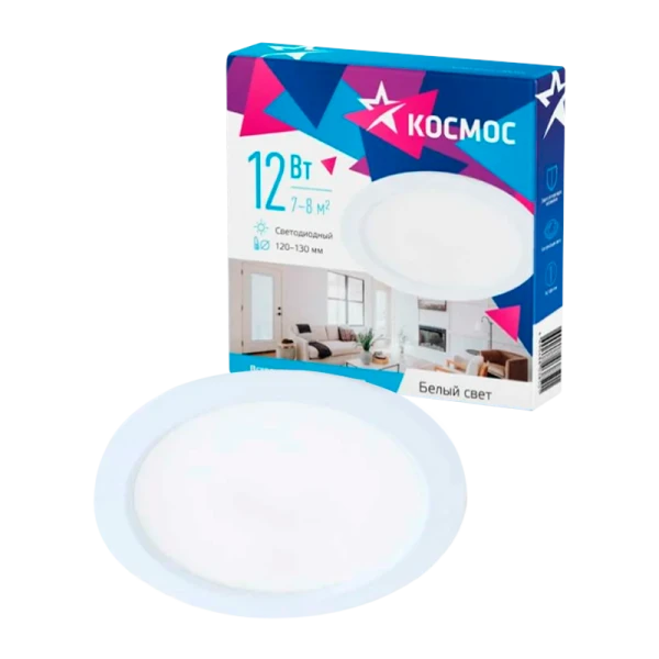 Светодиодная панель, круглая, цвет белый, КОСМОС DownL 12W, 180-265В, 4000K (KDownL12W4000K)