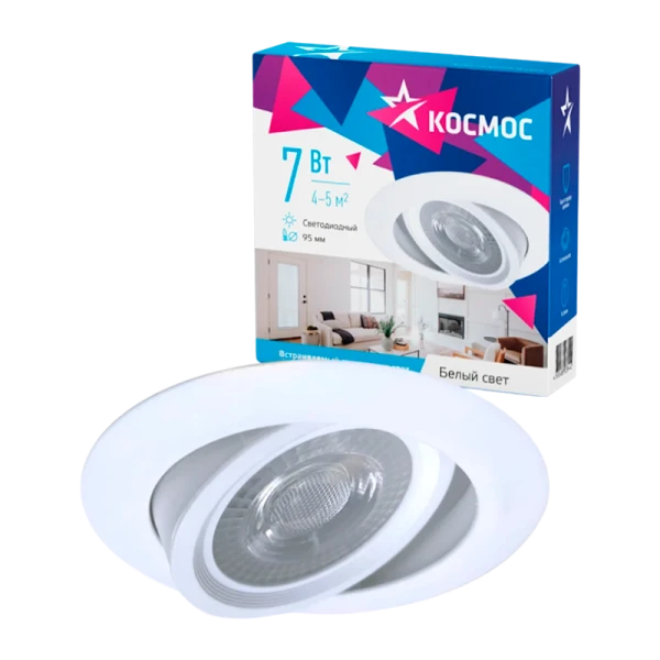 Светодиодная панель, круглая поворотная, цвет белый,КОСМОС DownRR 7W,180-265В,4000K (KDownRR7W4000K)