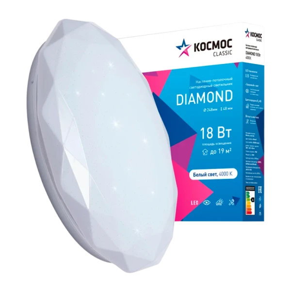 Светодиодный настенно-потолочный светильник Космос Сlassic Diamond — прекрасное решение как основного, так и дополнительного освещения офисных, торговых или жилых помещений.