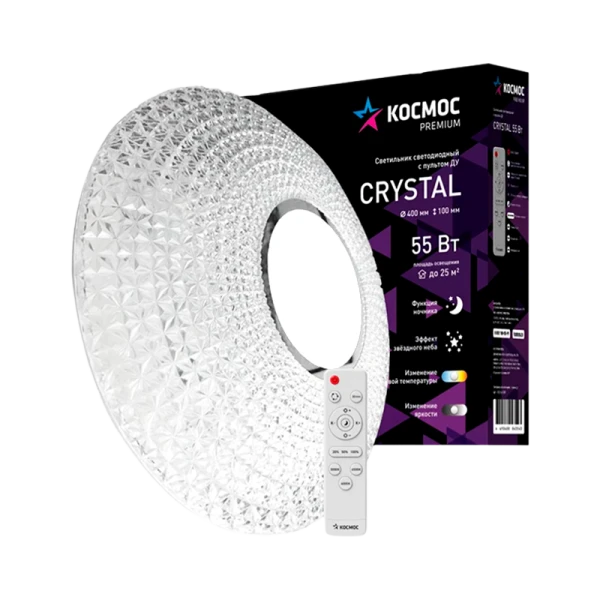 Светильник настенно-потолочный Космос CRYSTAL Premium 55W 230V LED накладной пульт ДУ белый (1/5)