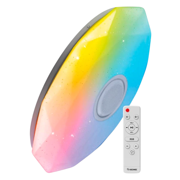 Светильник светодиодный КОСМОС PREMIUM DIAMOND-RGB мощностью 75 Вт — это идеальное решение для создания стильного и современного освещения в вашем интерьере. С уникальным дизайном и высокими техническими характеристиками, этот светильник станет настоящим украшением вашего пространства. Светильник обеспечивает яркость до 6000 лм и может работать в диапазоне цветовой температуры от 3000 до 6500 К. Это позволяет легко адаптировать освещение под любое настроение или потребность, от теплого и уютного до холодного и яркого. Управление осуществляется с помощью удобного пульта ДУ, что делает использование устройства простым и интуитивно понятным.