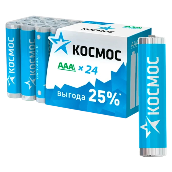 Батарейкb Космоc алкалиновый AAA/LR03 – идеальный выбор для тех, кто ищет надежные и долговечные батарейки. В упаковке содержится 24 штуки батарейки ААА. Батарейки формата AAA, также известные как «мизинчиковые» прекрасно подходят для питания различных устройств, включая пульты дистанционного управления, игрушки, фонарики и много другое. Они обеспечивают стабильную работу ваших приборов и являются отличной альтернативой более дорогим аналогам.