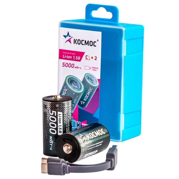 Аккумулятор бытовой Космос R14 C BOX2 Li-ion 3300mAh Type-C (2/10/100)