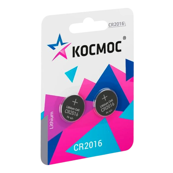Миниатюрный литиевый элемент питания Космос СR2016 с длительным сроком хранения - до 10 лет. Высота: 1,6мм, диаметр 20мм. Часто применяются в приборах маленького размера, часах, пультах управления. Стабильно работает при минусовой температуре.