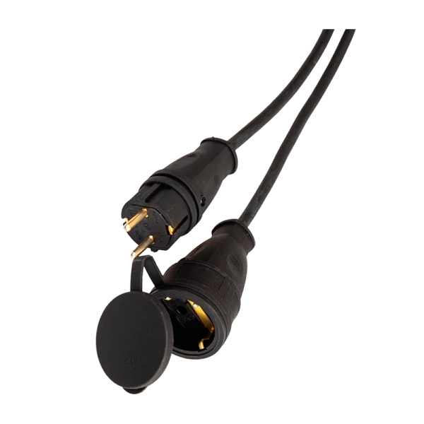 Силовой удлинитель в виде шнура, с одного конца литая вилка с другого конца прорезиненное гнездо с заземлением и защитной крышкой. Идеальный вариант для подключение садовой и рабочей техники на удалении в любых условиях. Черный кабель КГ (Кабель гибкий) – это кабель силовой очень гибкий с изоляцией и оболочкой из резины. Морозоустойчив до -40 градусов и максимальной мощностью нагрузки 3500Вт. 30м, 10А, IP44, КГ 2х1мм.
