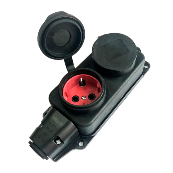 Колодка штепсельная соединительная из поливинилхлорида. 2 гнезда. Контакты из меди с луженым земляным контактом. Номинальное напряжение 250 В, Номинальная сила тока 16 А, Максимальная мощность 3600 Вт, Номинальная частота 50 Гц, Число контактов 2P+PE, материал PVC.