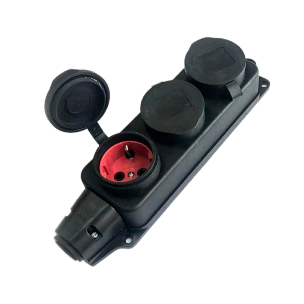 Колодка штепсельная соединительная из поливинилхлорида. 3 гнезда. Контакты из меди с луженым земляным контактом. Номинальное напряжение 250 В, Номинальная сила тока 16 А, Максимальная мощность 3600 Вт, Номинальная частота 50 Гц, Число контактов 2P+PE, материал PVC.