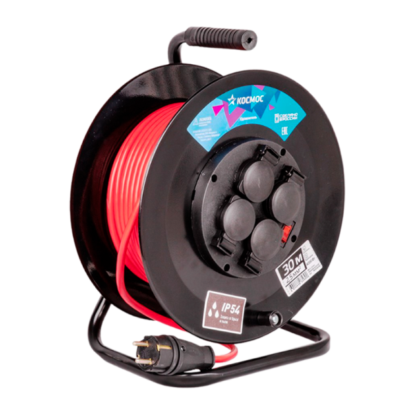 Удлинитель Космос 4р.С/З 16A 30.0м ПВС 3х2.5мм² IP54 на катушке (1)