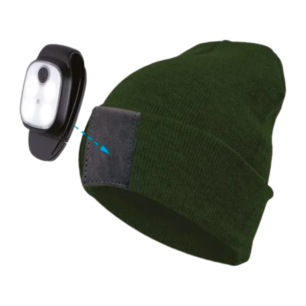 Шапка с фонарем желтая, универсальный размер. Съемный фонарь, 3 уровня яркости, белый холодный, USB5V