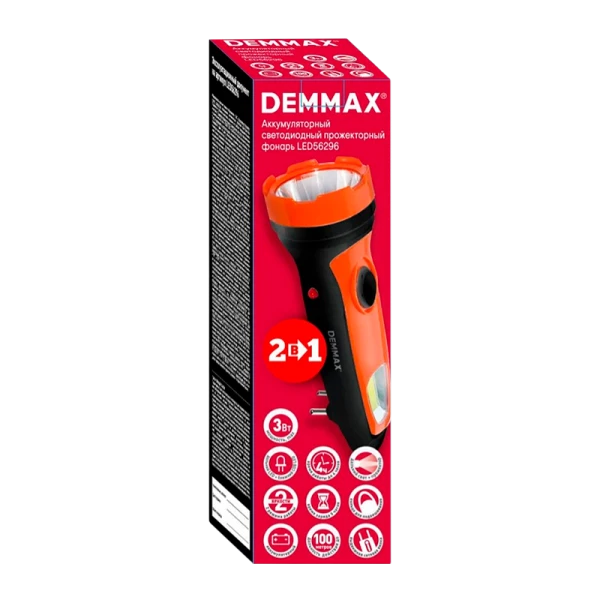 Фонарь ручной Demmax LED56296 1LED+COB от аккумулятора 2 режима черный оранжевый (1/120)