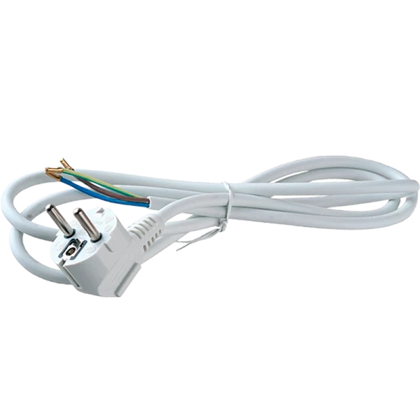 Сетевой кабель Volsten S-LR2 ПВС3х1 белый длина 1,5 м с угловой евровилкой для подключения бытовых и осветительных приборов к электрической сети. Отличное решение при производстве источников света или в том случае, если старый провод от любимого торшера или настольной лампы пришел в негодность или порвался. Максимальная суммарная мощность подключенных устройств не должна превышать 3500 Вт. Комплектующие элементы изделия рассчитаны на безопасное использование при прохождении тока силой до 16А.