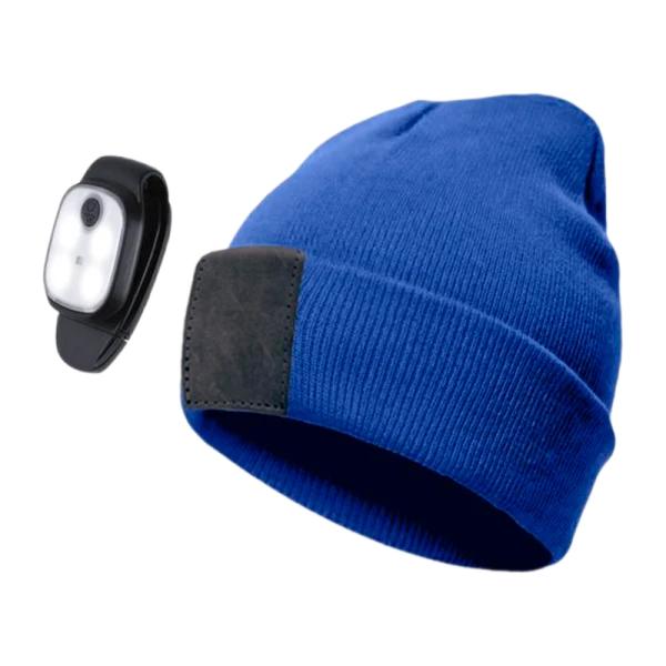 Удобная и модная модель осенне-зимнего сезона — тёплая шапка синего цвета с фонариком. В период холодных вечеров, когда темнеет уже днем, фонарик не понадобится носить отдельно — встроенный фонарик на 120 лм светит до 3 часов без подзарядки.