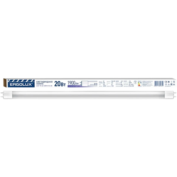 Лампа светодиодная Ergolux T8 G13 20W 6500К 170-265V трубка PRO матовая (1/25)