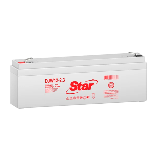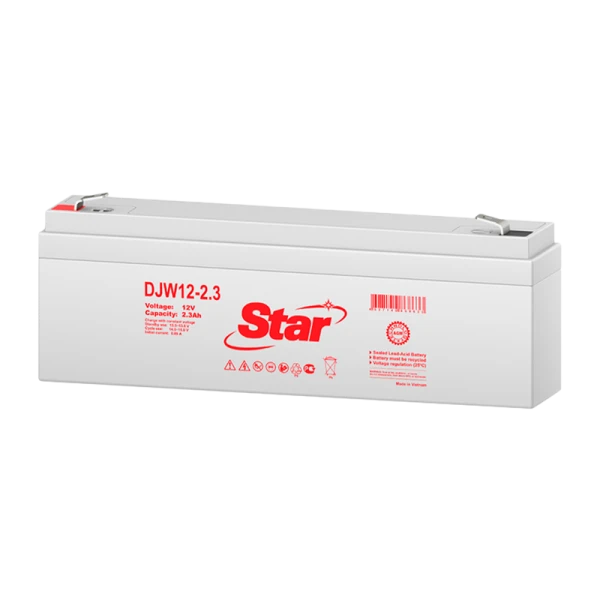Аккумуляторные батареи STAR серии DJW12-2.3 – необслуживаемые (выполненные по AGM–технологии) батареи общего применения, имеют небольшие массогабаритные показатели; способны работать в циклическом режиме; герметизированы – не требуют долива воды; безопасны в эксплуатации; имеют низкий уровень саморазряда; высоконадежны. Предназначены для обеспечения резервным питанием систем охраны и пожарной безопасности, телекоммуникационного оборудования и связи, промышленных объектов широкого назначения, работы в ИБП (UPS).
