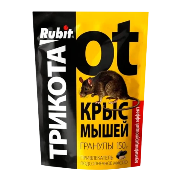 Гранулы Рубит ТриКота с подсолнечным маслом – это высокоэффективный препарат для борьбы с крысами и мышами.