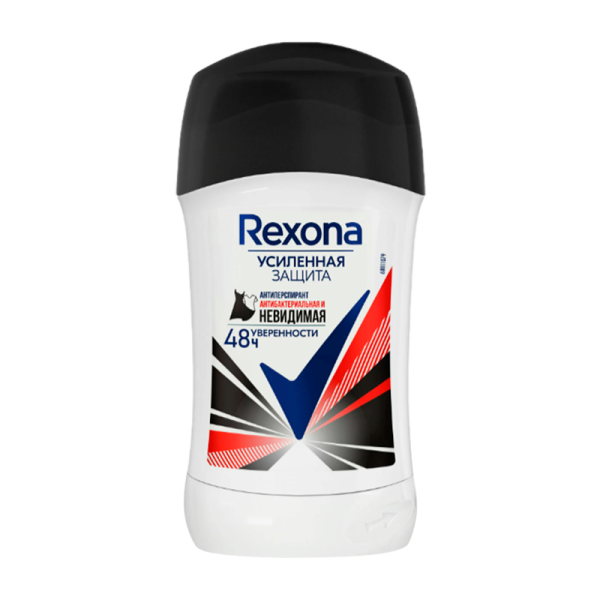 Дезодорант - антиперспирант-карандаш Rexona Антибактериальная невидимая на черной и белой одежде с технологией двойной защиты: нет поту, нет запаху, нет белым следам на черном и желтым пятнам на белом! В его формуле достигнут оптимальный баланс: концентрация активного компонента делает формулу невидимой на коже и одежде без ущерба эффективности против бактерий, которые являются причиной неприятного запаха. Он обеспечивает в 10 раз более эффективную защиту против бактерий*, вызывающих неприятный запах, а также бережно относится к нежной коже подмышек.