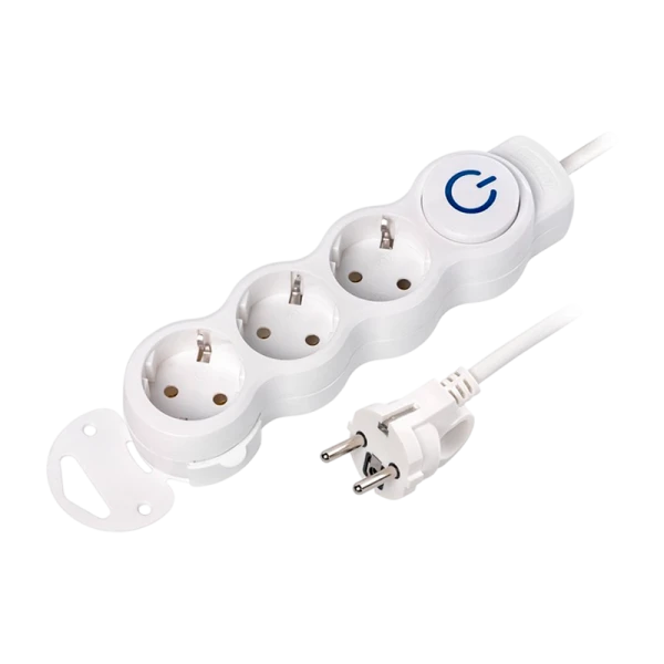 Оснащен 3 гнездами, имеет длину 5 метров и максимальную мощность 3,5 кВт. Устройство оборудовано выключателем и заземлением для обеспечения безопасности использования.