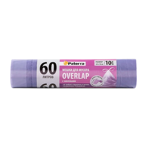 Мешки для мусора Paterra OVERLAP 60л ПНД 10шт. с завязками.