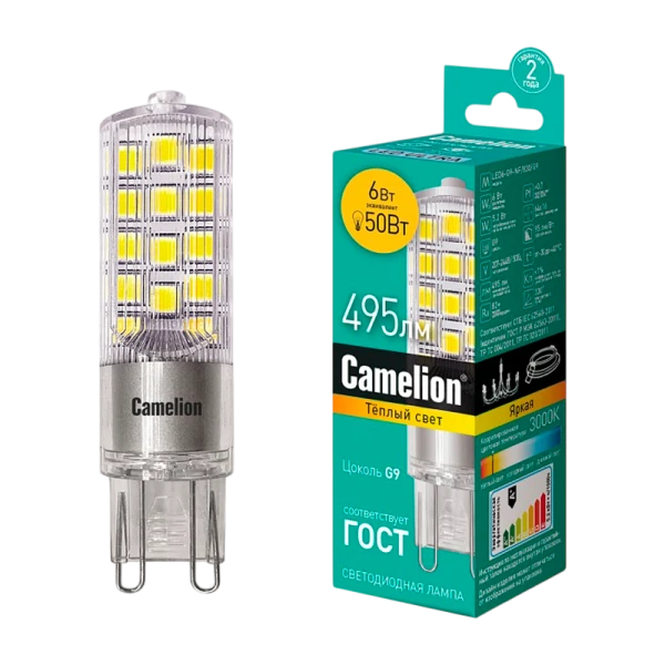 Светодиодная лампа Camelion LED6-G9-NF/830/G9 мощностью 6Вт идеально подходит для освещения жилых, офисных и коммерческих помещений. Обеспечивает световой поток 495 лм при цветовой температуре 3000K. Встроенный источник питания позволяет использовать СДЛ Camelion в стандартных патронах.