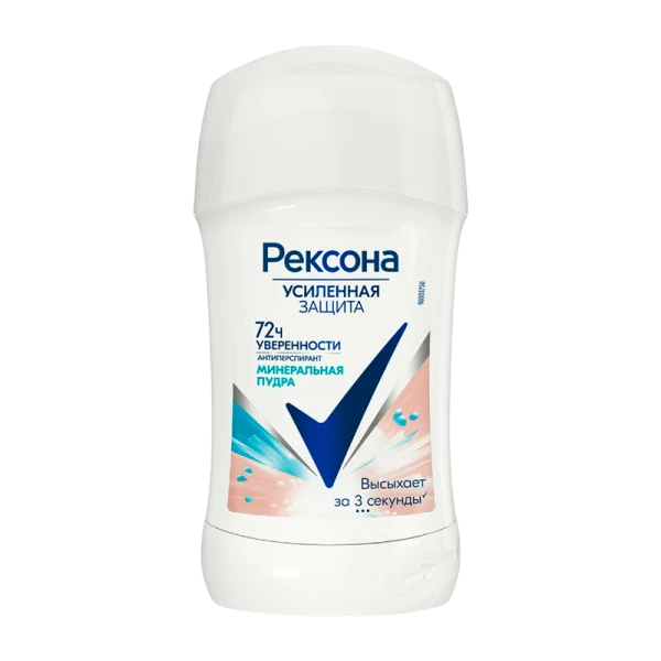 Дезодорант стик Рексона Минеральная пудра – это средство для личной гигиены, которое предоставляет коже подмышек оптимальный уход. Освежающий дезодорант карандаш обеспечивает эффективное устранение запаха и пота на 72 часа. Женский стик Rexona разработан на основе технологии со специальными микрочастицами, которые активируются при движении, сохраняя свежесть в течение всего дня. Дезодорант антиперспирант Rexona содержит особые микрокапсулы с ароматом, которые раскрываются при каждом движении. Дезодорант Rexona Минеральная пудра имеет свежий цветочно-фруктовый аромат нежной фрезии и кокосовой воды. Твердый дезодорант-антиперспирант Рексона Минеральная пудра – это ваша надежная защита от запаха и пота на 72 часа! Не требует повторного нанесения в течение дня.