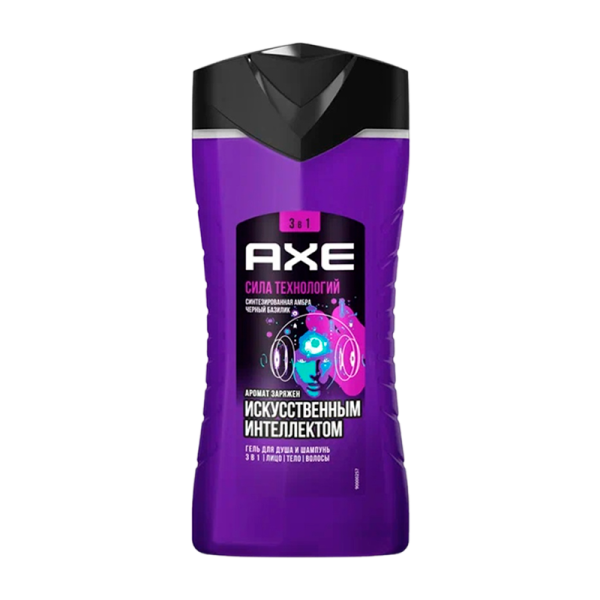 Акс шампунь мужской 3в1 Сила технологий имеет аромат, заряженный искусственным интеллектом. Запах средства представляет собой коктейль из пряных, древесных и сладких нот с неожиданно дерзким мужским характером. В составе черный базилик, амбра и ананас, смягченные нотками пралине и сандала, каштана и ванили.