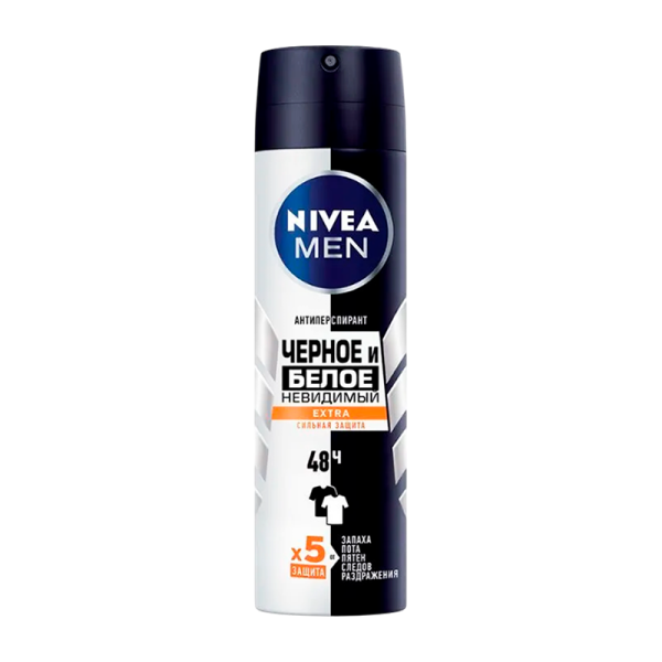 Дезодорант мужской Nivea черное и белое Extra спрей 150мл (1/12)