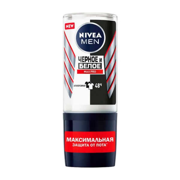 Шариковый антиперспирант NIVEA MEN Черное и Белое MAX PRO обеспечивает максимальную защиту от пота на протяжении 48 часов. Не оставляет белых следов на темной одежде и желтых пятен на белой. Представлен в инновационной форме стеклянного перевернутого флакона - используй до последней капли! Шариковый формат обеспечивает в 2 раза больше применений, чем спрей. Вместе с MAX PRO ты можешь быть уверен в себе в течение всего дня!