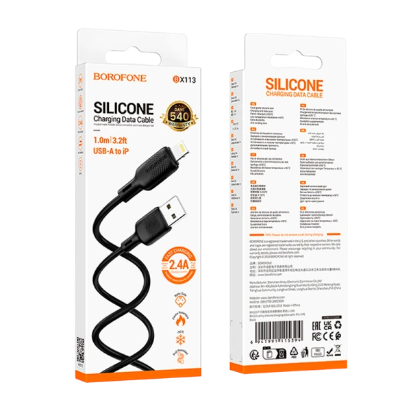 Кабель Borofone BX113 USB (m)-Lightning (m) 1м 2.4A силикон черный (1/360)