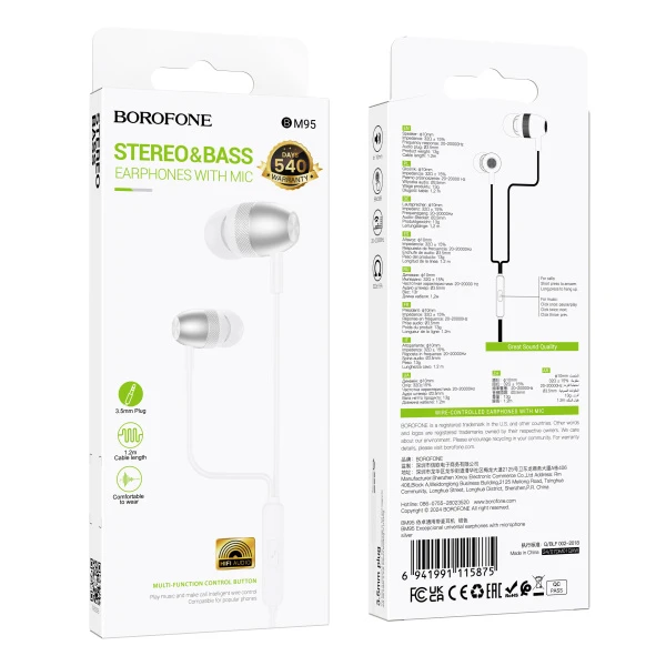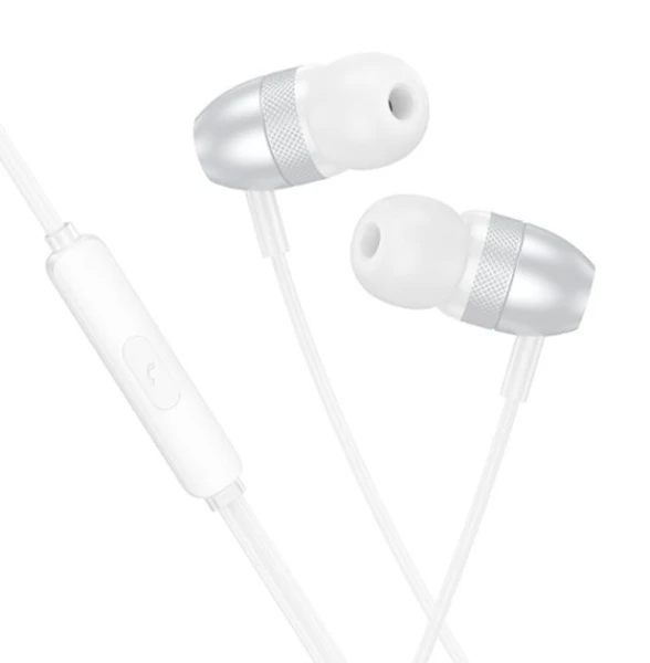 Наушники внутриканальные Borofone BM95, Excepcional, Jack 3.5мм, 1.2 м, цвет: белый, серая вставка