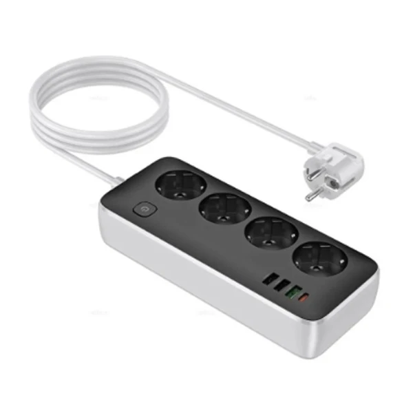 Сетевой фильтр HOCO AC22, 1.5м, 4 розетка, 3 USB, Type-C, кнопка питания, PD30W, цвет: чёрный