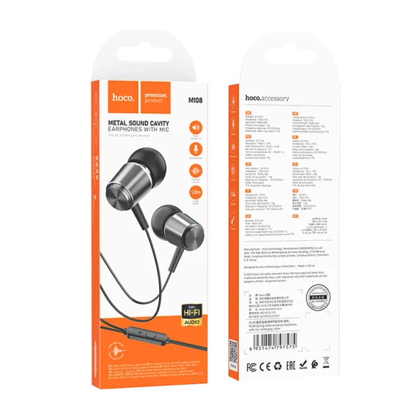 Наушники внутриканальные HOCO M108 с микрофоном серый.