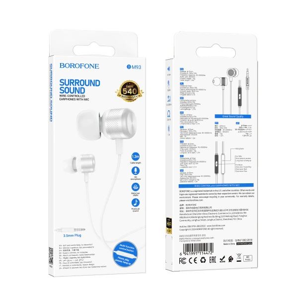 Наушники внутриканальные Borofone BM93 с микр. серебряный (1/76/304)