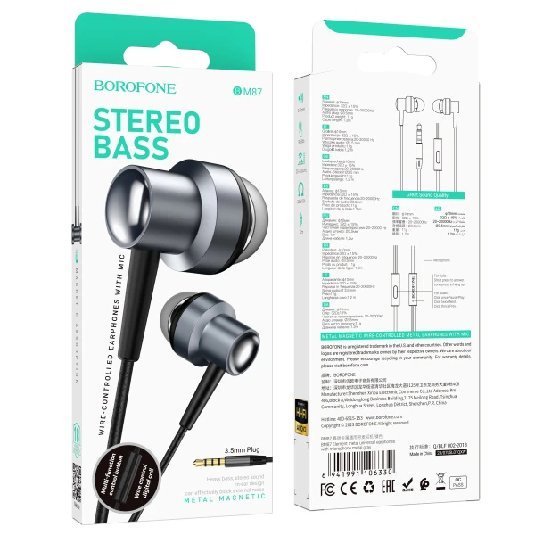 Наушники внутриканальные Borofone BM87 с микр. серебряный (1/76/304)
