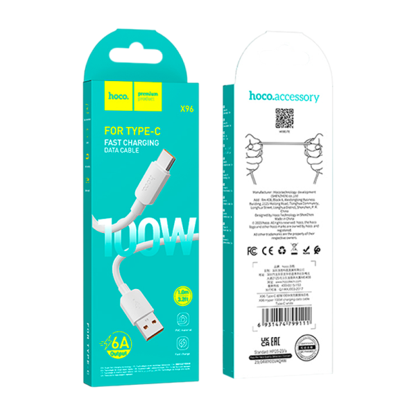 Кабель HOCO X96 USB (m)-Type-C (m) 1м 6A 100W силикон белый (1/31/310)