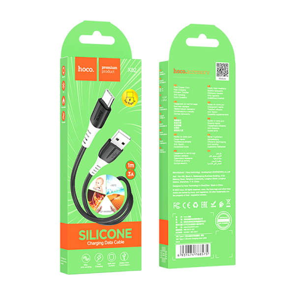 Кабель HOCO X82 USB (m)-Type-C (m) 1м 3.0A силикон черный.