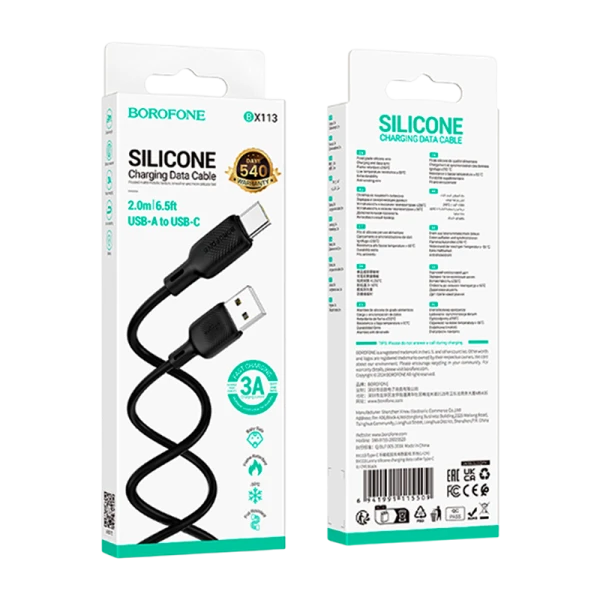 Кабель Borofone BX113 USB (m)-Type-C (m) 2.0м 3.0A силикон черный.