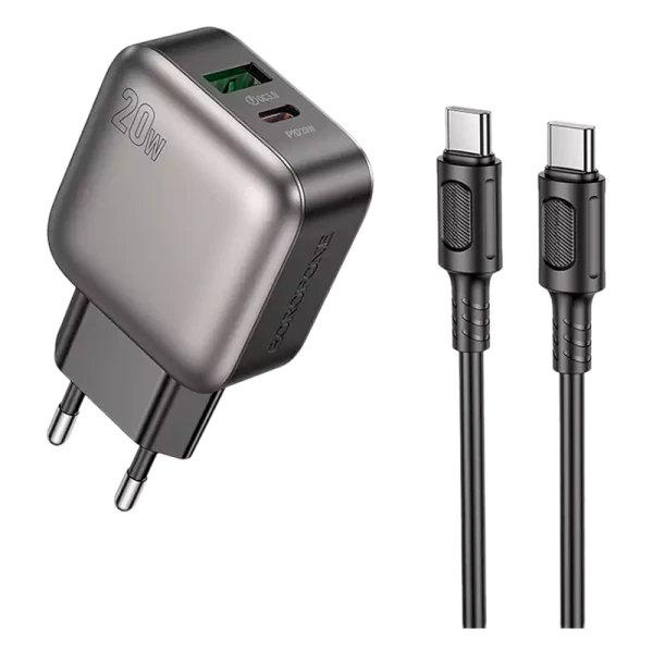 Сетевое З/У Borofone BAS54A 1USB+1Type-C 3.0A 20W PD,QC с кабелем Type-C черный (1/48/192)