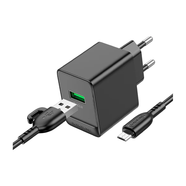 Сетевое зарядное устройство Borofone – надежный адаптер с функцией быстрой зарядки, который поможет вам всегда оставаться на связи. Оснащен стандартной сетевой вилкой и USB портом для подсоединения кабеля, что делает его универсальным решением для зарядки смартфонов, планшетов и другой цифровой техники. Блок питания Borofone BAS12A поддерживает функцию быстрой зарядки QC 3.0 и выдает максимальную мощность в 18W. Изготовлен из качественных материалов: огнезащитного PC и ABS-пластика, что обеспечивает безопасность и долговечность использования аксессуара.