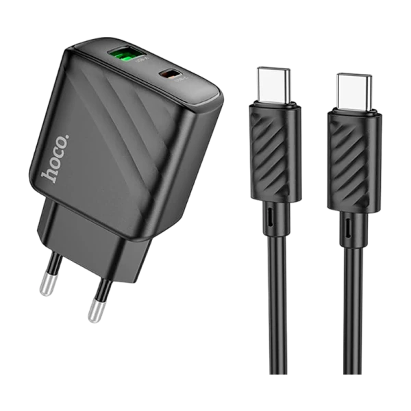 Сетевое З/У HOCO CS23A Sunligh 1USB+1Type-C 30W PD,QC,FCP,AFC с кабелем Type-C черный (1/32/192)