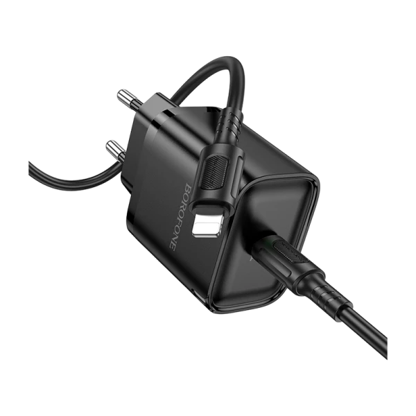 Сетевое З/У Borofone BA84A 1USB/Type-C 30W PD,QC с кабелем Lightning черный