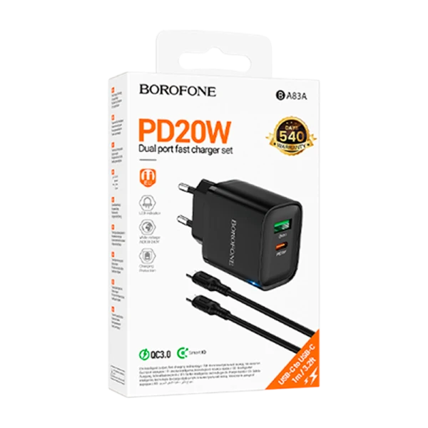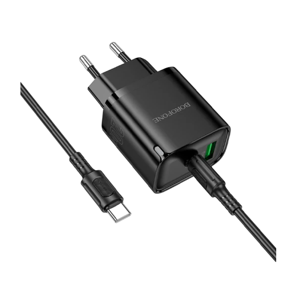 Сетевое З/У Borofone BA83A 1USB+1Type-C 60W PD,QC с кабелем Type-C/Type-C черный