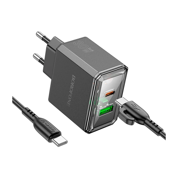 Сетевое З/У Borofone BAS32A 1USB+1Type-C 3.0A 30W PD,QC с кабелем Type-C/Type-C черный.