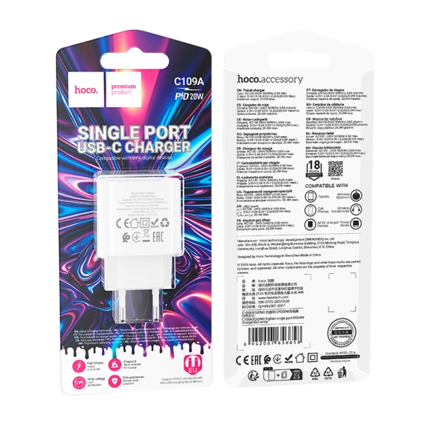 Сетевое З/У HOCO C109A Type-C 20W PD3.0 белый.