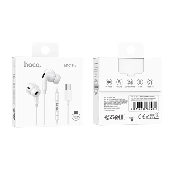 Наушники внутриканальные HOCO M101 Pro - это стильная и удобная гарнитура, которая подойдет как для прослушивания музыки, так и для общения по телефону. Они оснащены Type-C разъемом, что позволяет подключать их к большинству современных устройств, таких как смартфоны, планшеты, компьютеры, ноутбуки и т.д. HOCO M101 Pro Crystal sound обладают отличным качеством звука. Они оснащены 10-миллиметровыми динамиками, которые обеспечивают чистый и насыщенный звук. Это позволяет получить максимальное удовольствие от прослушивания музыки и общения по телефону. Встроенный контроллер с микрофоном позволяет общаться по телефону и обладает хорошей чувствительностью и качеством передачи голоса, что делает общение более комфортным и понятным.
