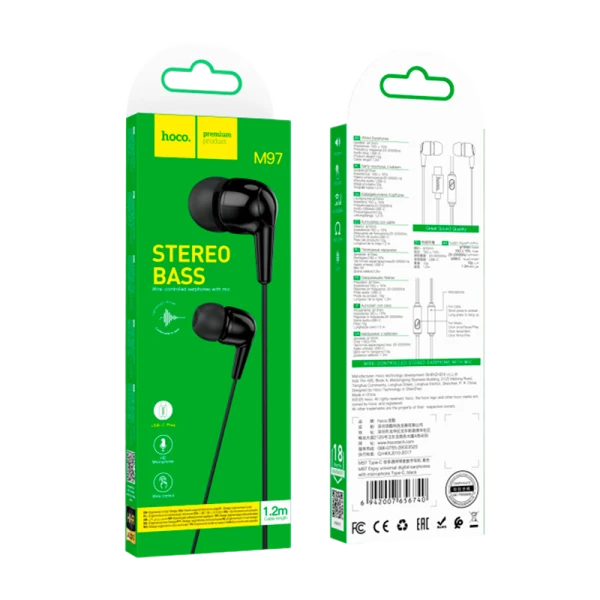 Наушники внутриканальные HOCO M97 с микр. Type-C черный (1/420)