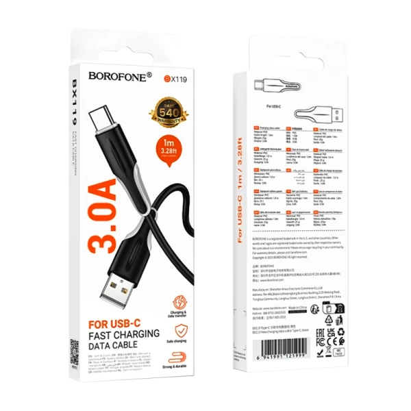 Кабель Borofone BX119 USB (m)-Type-C (m) 1м 3.0A ПВХ черный;